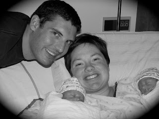 Well, the boys made it safely into the world! On June 25th at 8:18am and 8:20am Ian Thomas and Finn Thomas joined the Conway family. The c-section went as planned, but it was still the strangest experience ever. I didn't like the lose of control of my body at first, but then it was easy and I just laid back and waited to hear those two beautiful cries. Hearing those babies cry was awesome. They were here and they were breathing! Dr. Stietz even came to the delivery so he could check them out right when they were born. What a blessing that was to have a friendly face in the room that I trusted. When he looked me in the eyes and told me they were both doing great, I was then able to relax. The boys didn't need more oxygen than just the normal c-section stuff right when they came out. No oxygen beds, no tubes, no craziness. God blessed us with two healthy baby boys. Small but healthy. Finn was 5 lbs 8 oz, Ian was 4 lbs 6 oz.